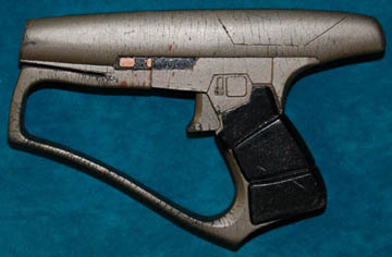 during both series. Made of cast foam rubber, the weapon is painted gun metal gray with black and copper color accents. Due to