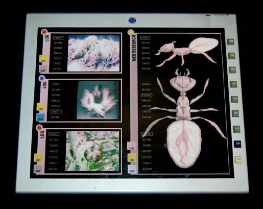 A large Personal Access Data Device (PADD). This device has a transparent display depicting a medical science experiment. These were made as a type of backlight display. They were then tailored for use as a PADD prop device.