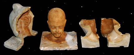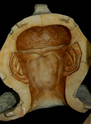 “Brunt” (Jeffrey Combs) was a Ferengi Commerce Authority Liquidator who often wore a bar of gold-pressed latinum around his neck. He was featured in eight Star Trek: Deep Space Nine episodes including “Family Business” in which he was given the task of dealing with “Quark’s (Armin Shimerman) mother, “Ishka” (Cecily Adams) after she was found to have illegally earned profit. This impressive mold was used to create the prosthetics to make Brunt’s Ferengi features including the distinctive bulbous head, ears and forehead ridges. The mold comes in four pieces; the center piece is a head cast that appears to be generic and then three pieces that enclose the head with the Ferengi details in it. Inscribed on the outside of the mold is “Brunt Ferengi”. Measures approx. 14 x 11 ¼ x 15 ½ inches.